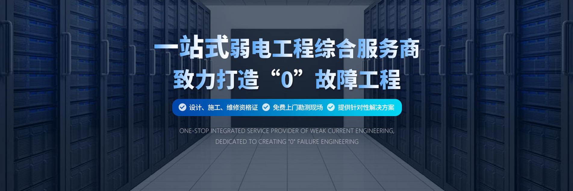 0112年經(jīng)驗(yàn) 專(zhuān)業(yè)就是保障12年耕耘,實(shí)力深厚:擁有電子與智能化網(wǎng)絡(luò)工程級(jí)承包二級(jí)資質(zhì)及安防監(jiān)控資質(zhì); 具備大、中型網(wǎng)絡(luò)工程、安防監(jiān)控、綜合布線、弱電工程等項(xiàng)目的設(shè)計(jì)、實(shí)施及管理經(jīng)驗(yàn),能夠?yàn)榭蛻?hù)提供完整的網(wǎng)絡(luò)機(jī)房工程解決方案以及弱電維保服務(wù)。